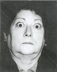 - Facie hipertiroídea: se caracteriza por una mirada expresiva, que está determinada por una ligera retracción del párpado superior; en algunos pacientes existe un exoftalmo (protrusión de los globos oculares). La piel se aprecia fina y húmeda. Se asocia a un exceso de hormona tiroídea. Al solicitar al paciente que siga con la mirada el dedo del examinador desde arriba hacia abajo, se hace más notoria la esclera del ojo entre el borde superior del iris y el borde del párpado superior. Este es el signo de Graefe.